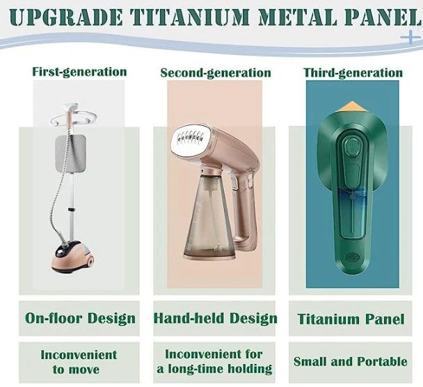 Upgraded Titanium Metal Panel: The steam iron for clothes uses a large titanium panel, irons at a constant temperature of 150?, quickly preheats, and irons smoothly. It can easily penetrate every fiber in the clothes so that the clothes can quickly recover as new, even the precious fabrics can be carefully taken care of without damaging the clothes.
